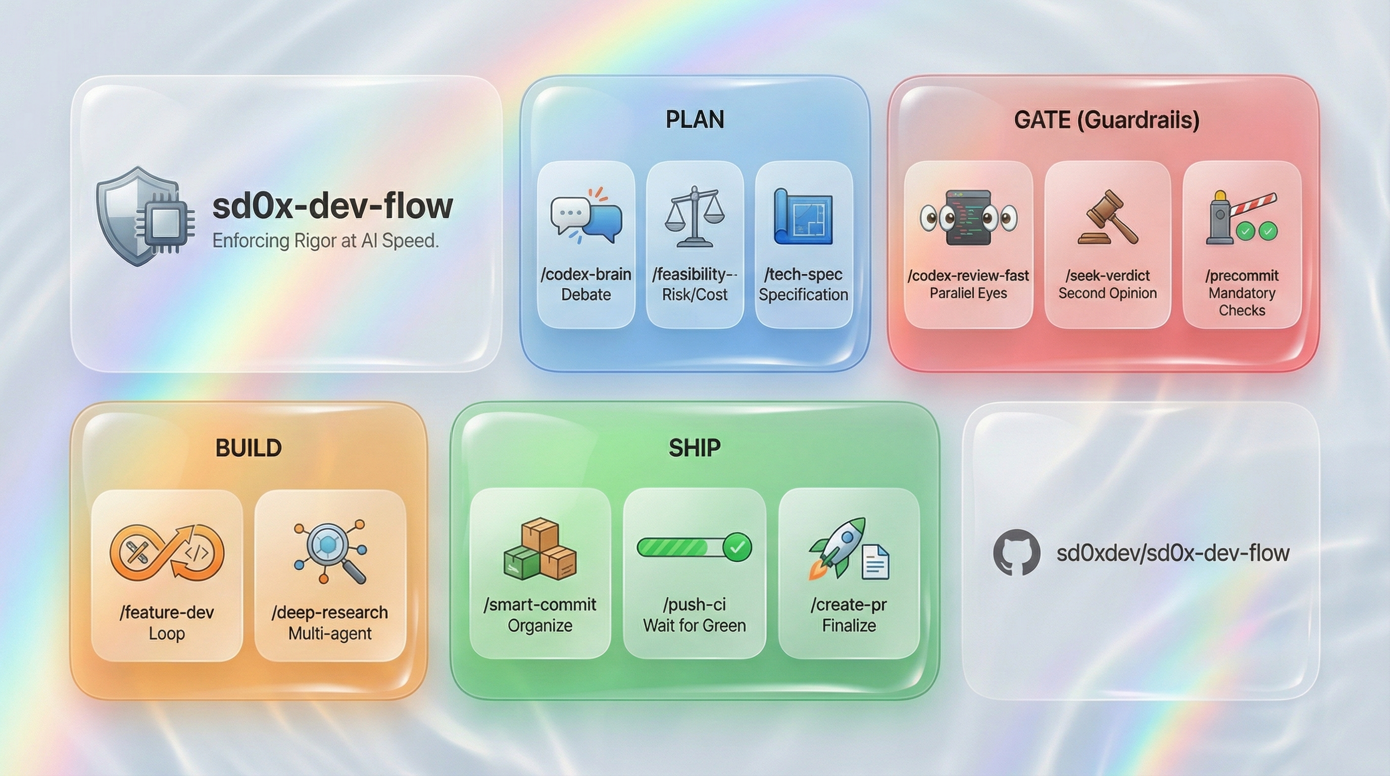| Without guardrails | With sd0x-dev-flow | |---|---| | AI skips review when context is long | Hook-enforced: stop-guard blocks incomplete reviews | | Single reviewer misses issues | Dual dispatch: Codex + secondary in parallel | | "Fixed it" without re-verification | Auto-loop: fix → re-review → pass → continue | | Review state lost after compact | State tracking: SessionStart hook re-injects |